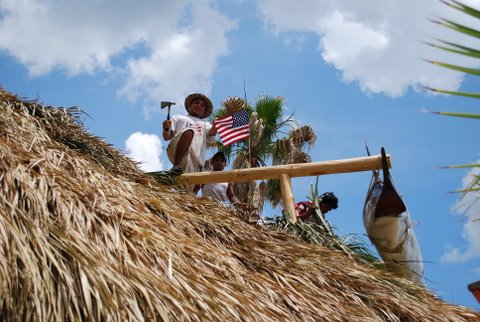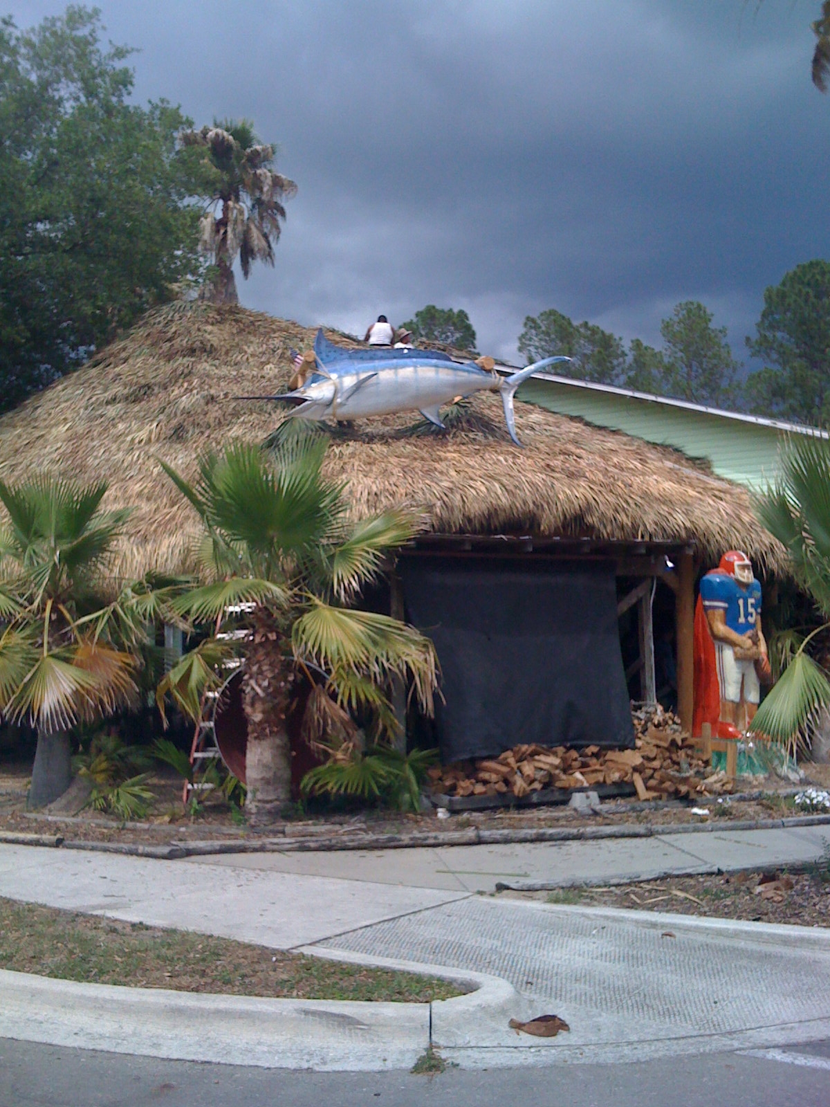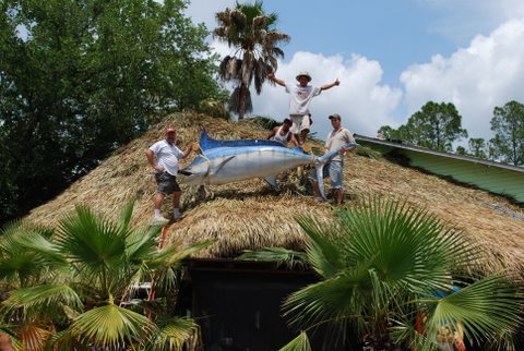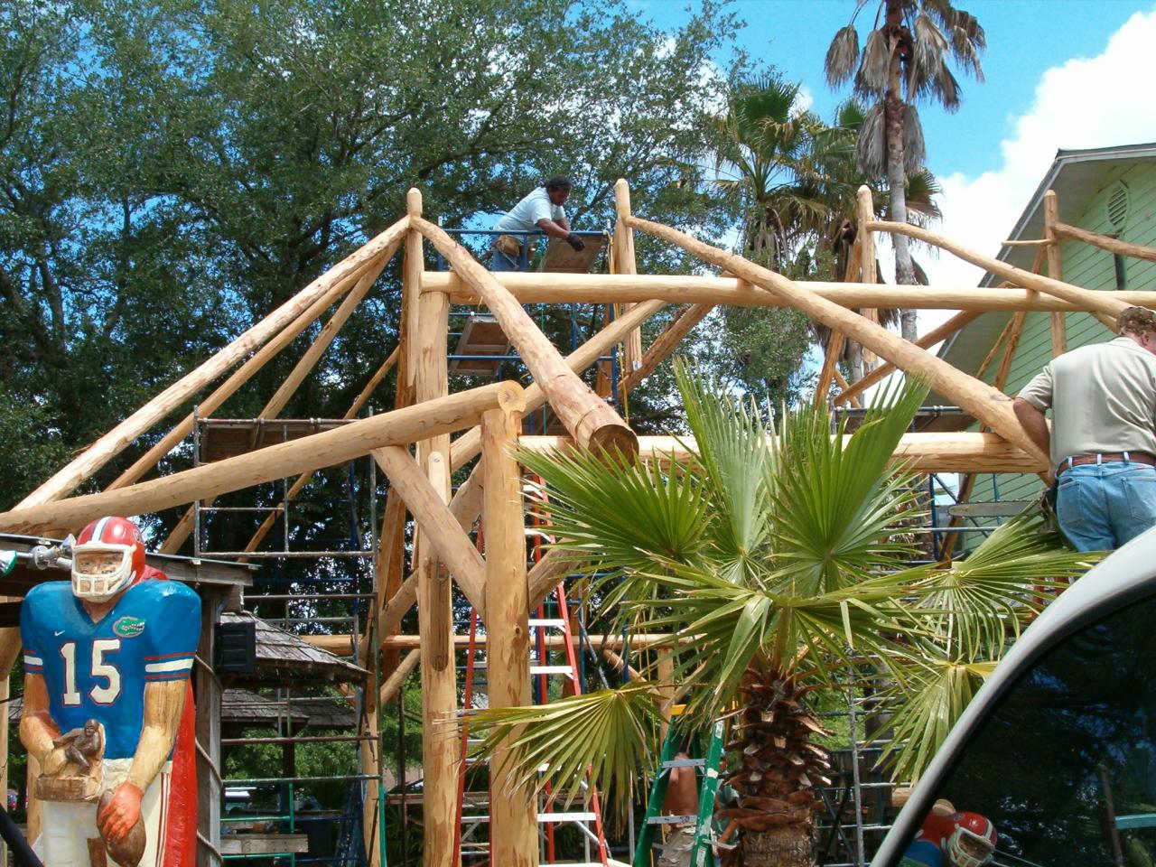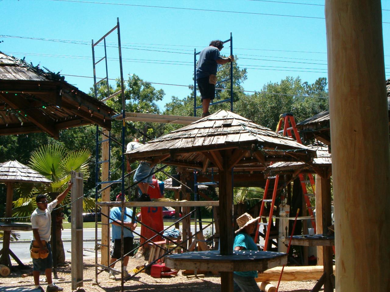 Jack and family's latest Tiki. Spring of 2009 they built an 1600 square foot TIKI at Ballyhoo Grill in Gainesville, Fl.
