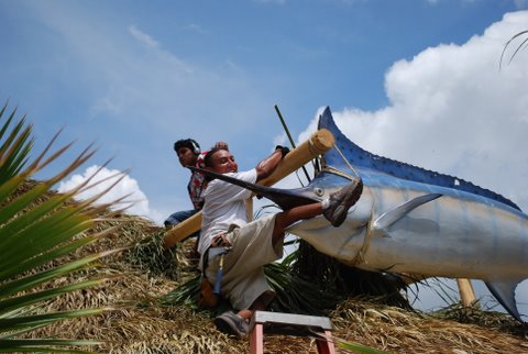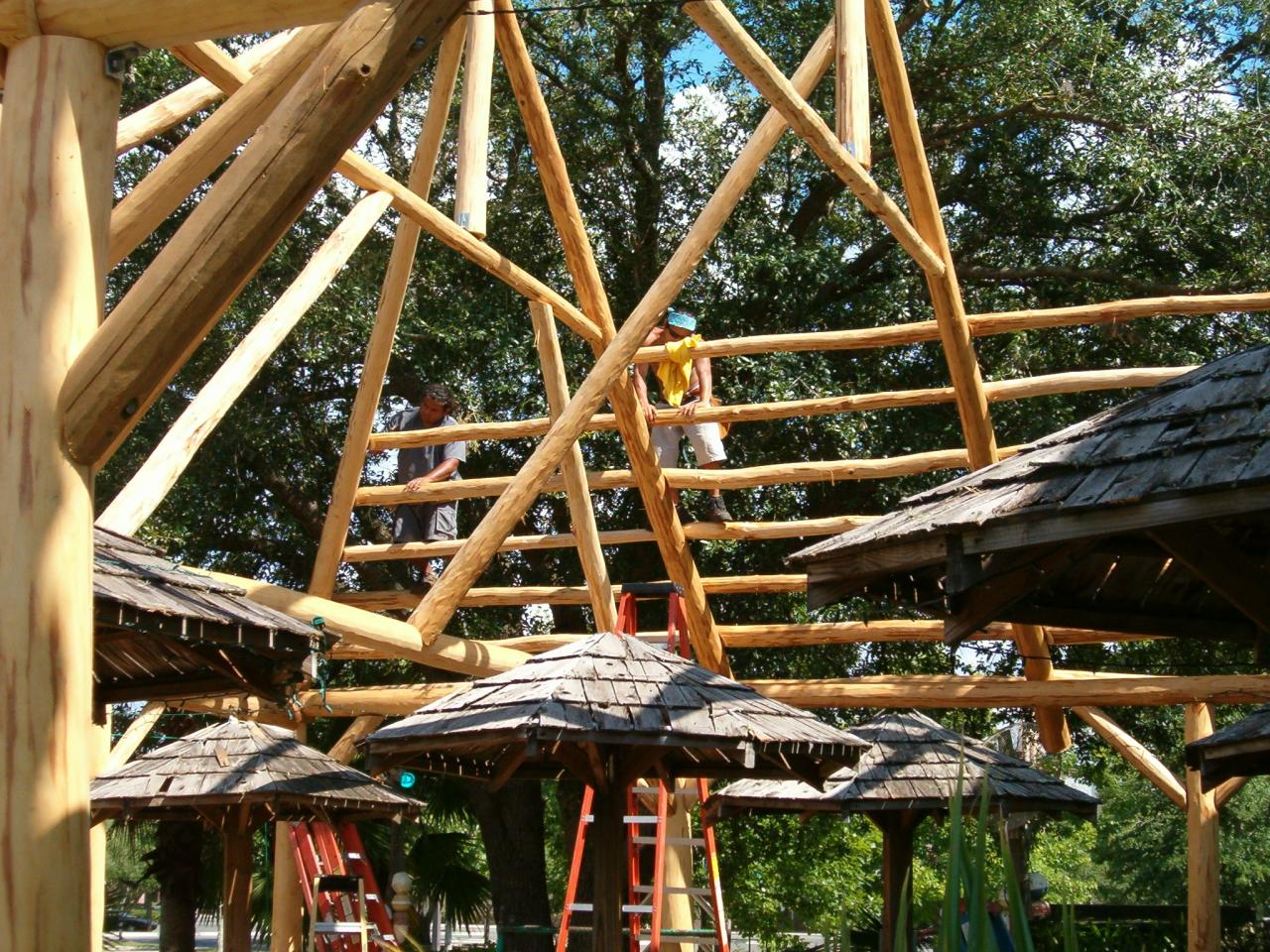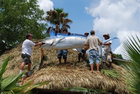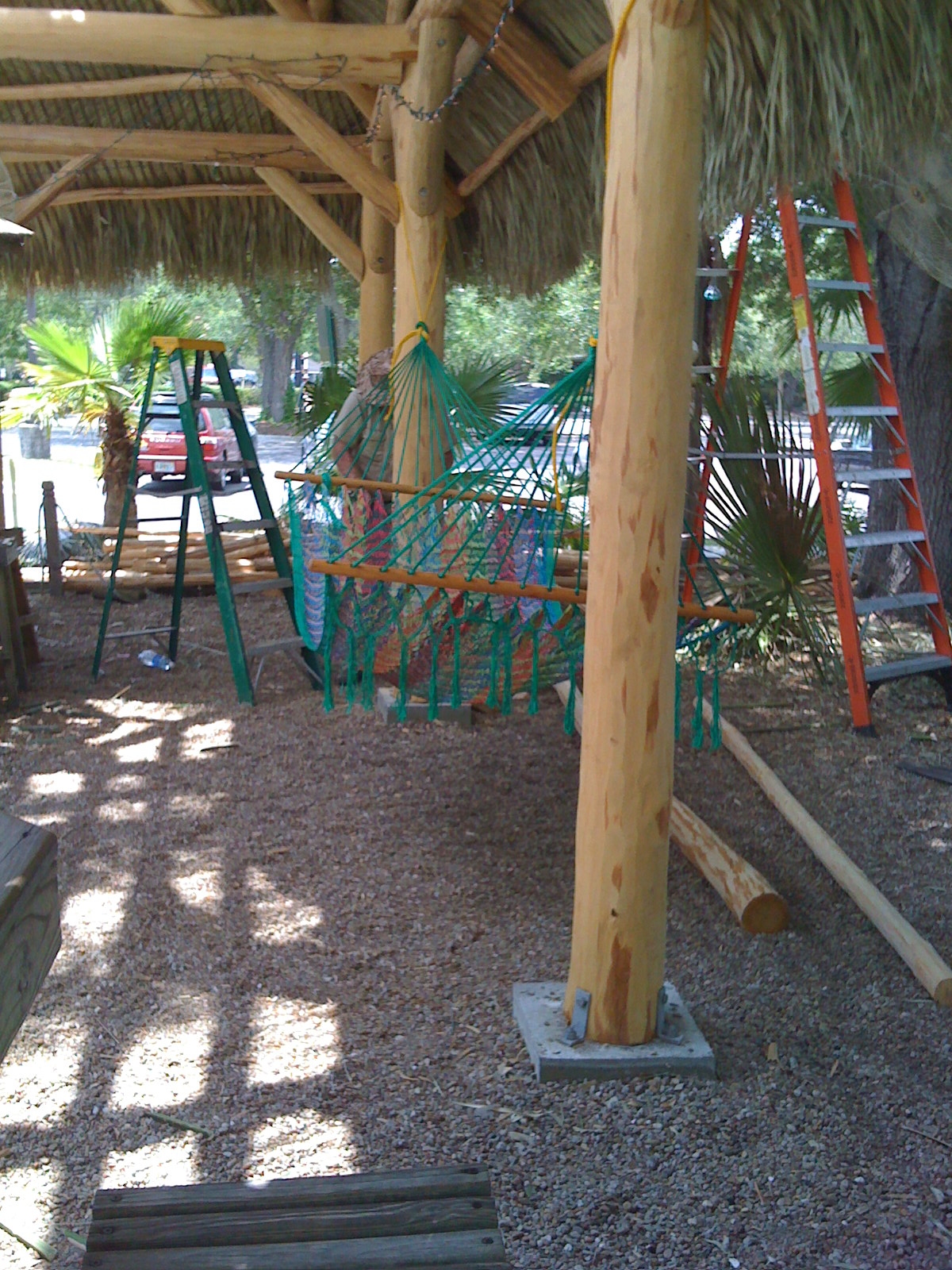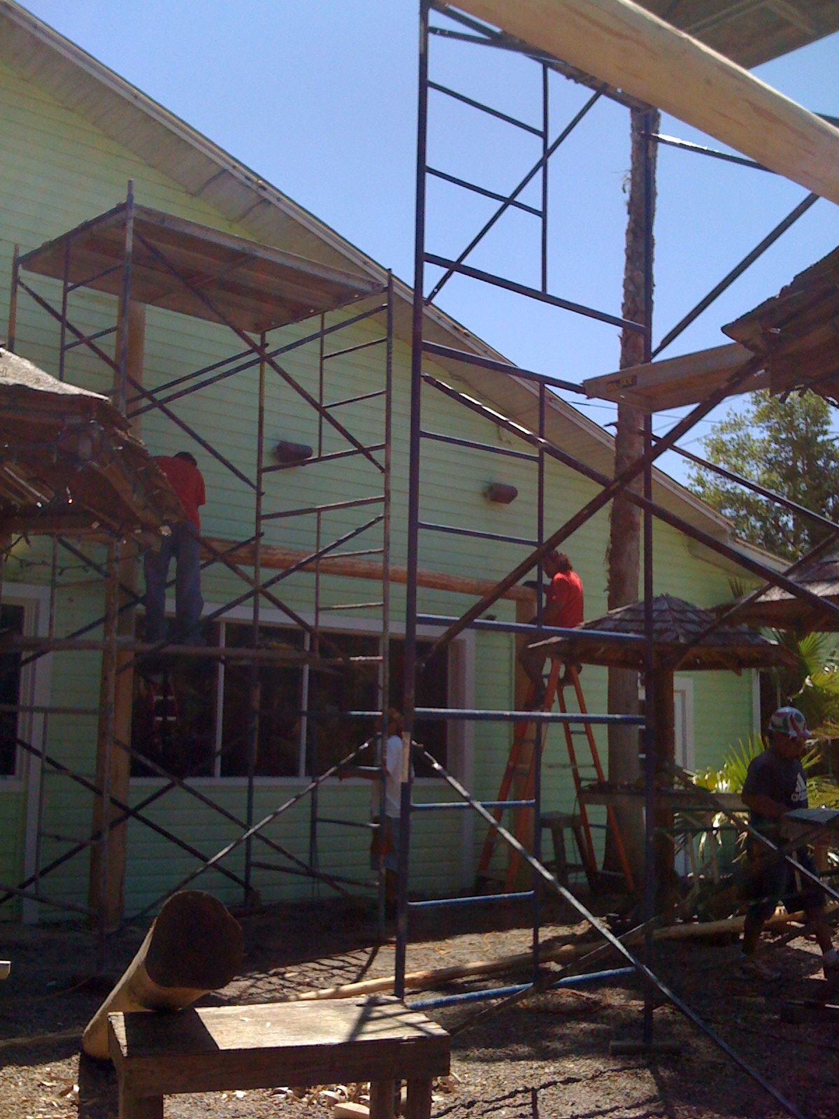 Jack and family's latest Tiki. Spring of 2009 they built an 1600 square foot TIKI at Ballyhoo Grill in Gainesville, Fl.